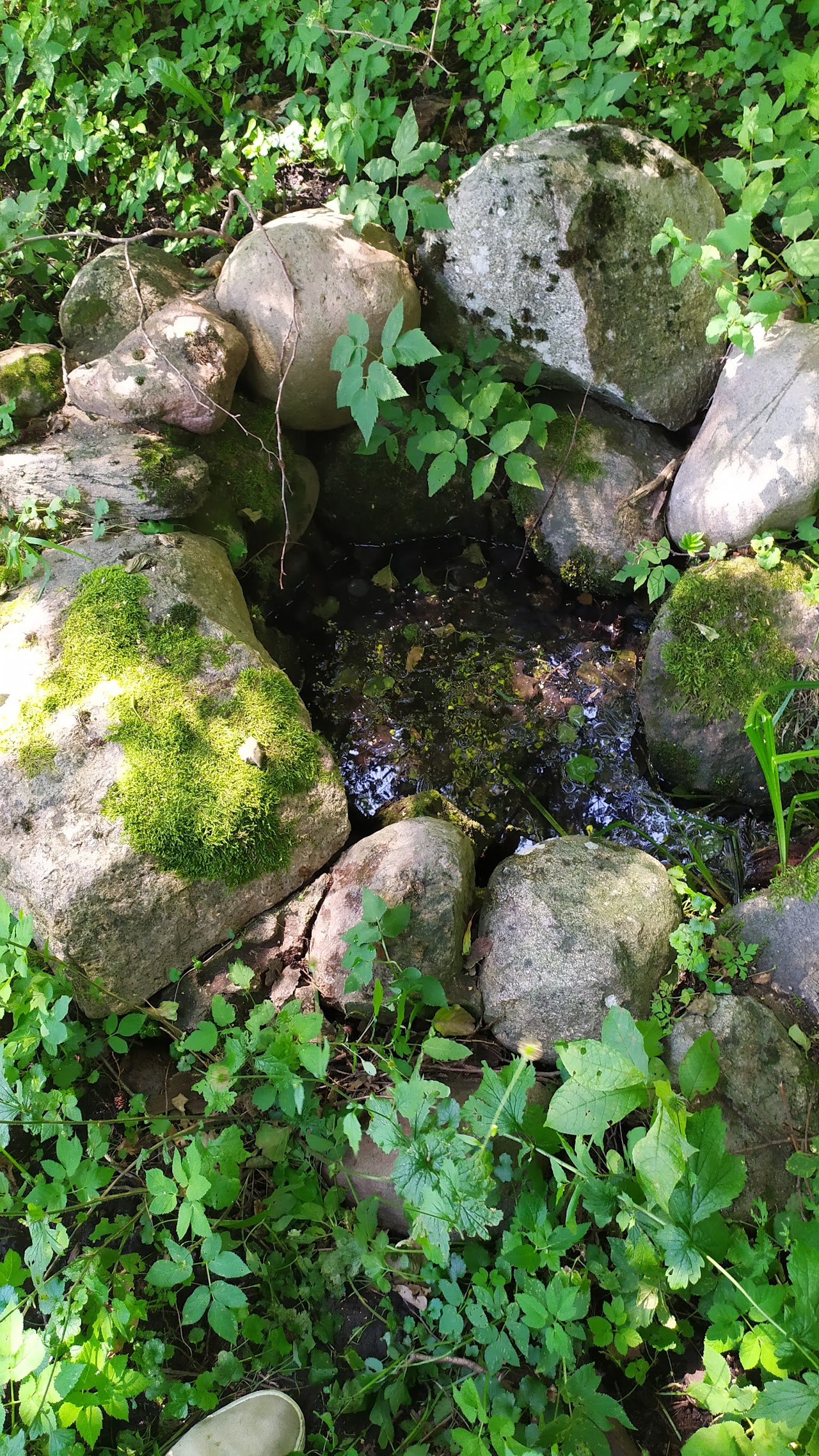 Вода из родника впадает в ручей — правый приток реки Мышанка.