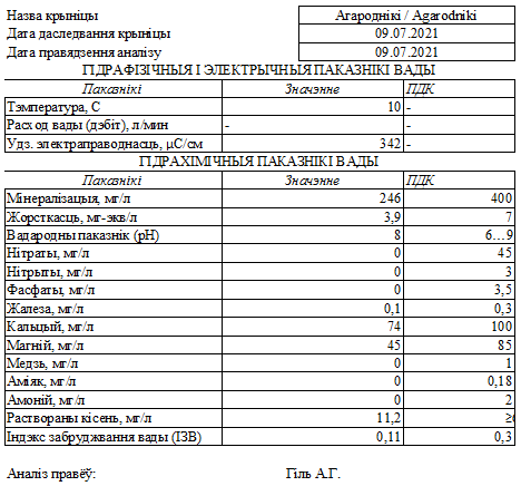 Анализ воды от 09.07.2021