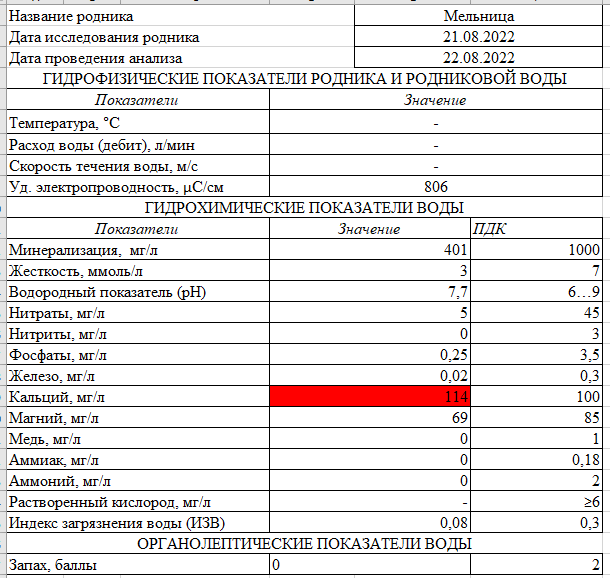 В роднике наблюдается периодическое повышение уровня нитратов. Не рекомендуется к употреблению.