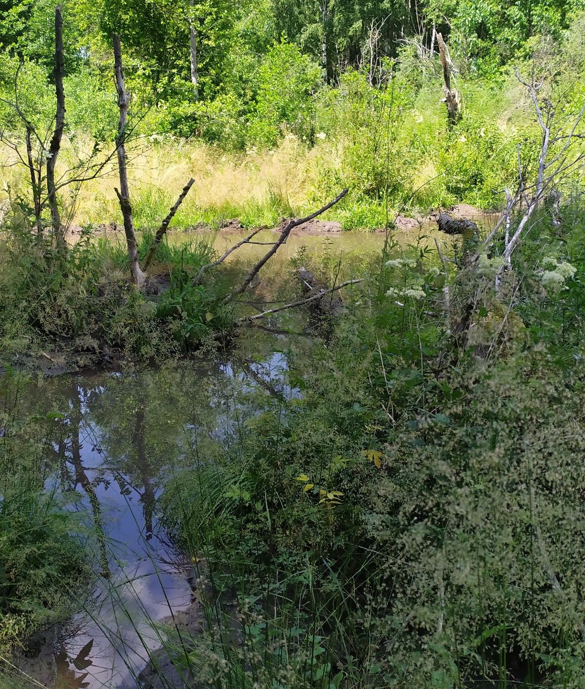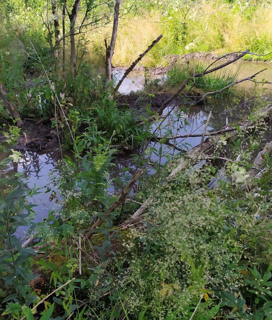 Родник необустроен. На нем бобры соорудили плотину, из-за чего родник представляет собой озерцо с мутной водой.