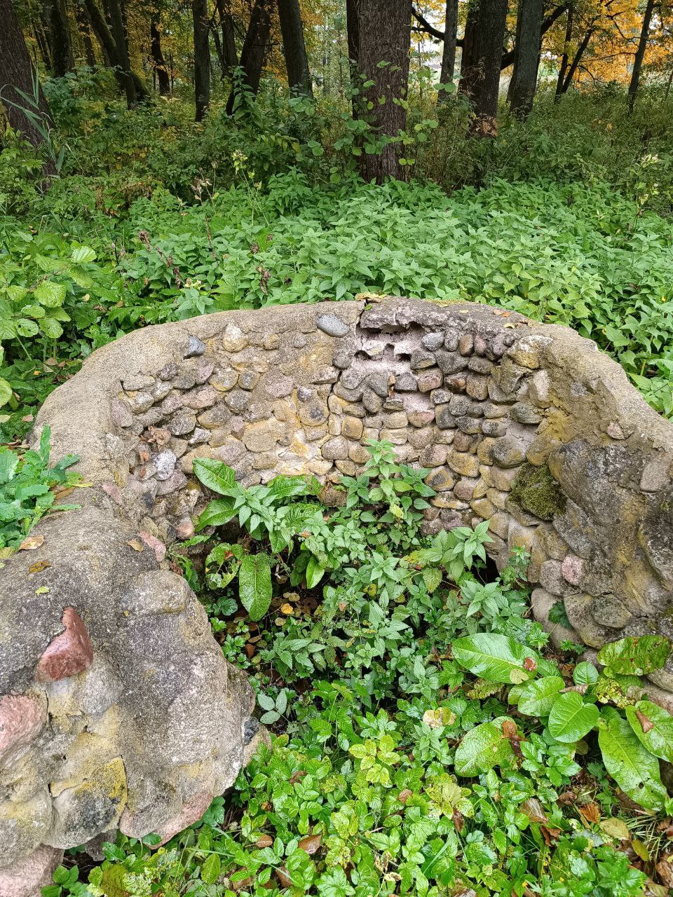 Родник оборудован в виде колодца, обложенного камнями. Сильно зарос. В октябре 2025 г. воды не было.