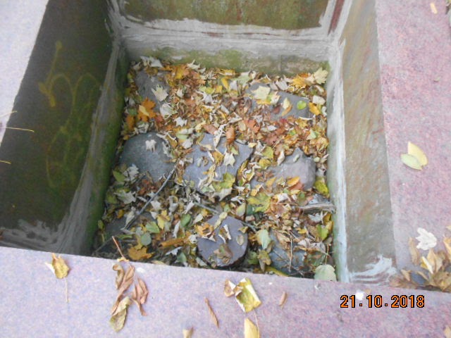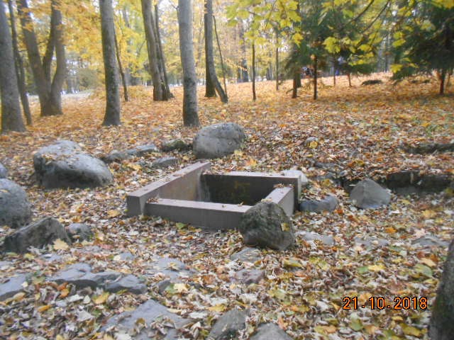 Родник оснащен каменными плитами. Вода должна была попадать в ручей возле пруда со статуей русалки. Но сейчас в роднике воды нет, родник пересох.
