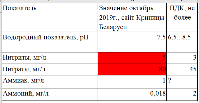 Превышение по уровню нитратов и нитритов. Непригодна для питья