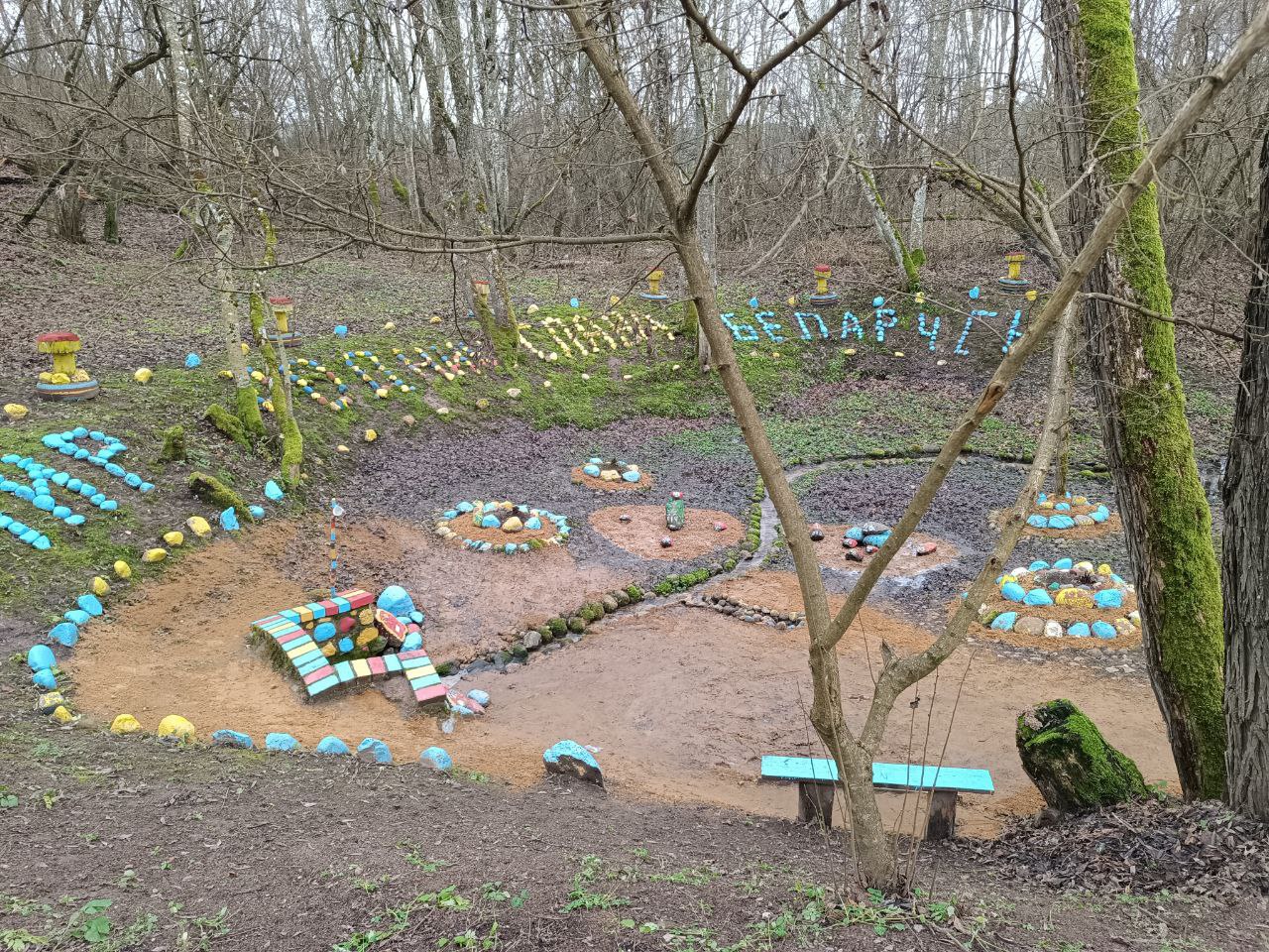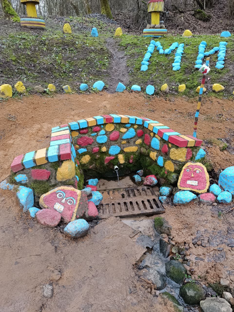 Вокруг родника располагаются довольно сюрреалистические инсталляции, а также проведено благоустройство (установлены лавки, ручей обложен камнями) - дело рук бывшего санитара психиатрической больницы, располагающейся в доме-крепости. Ее персонал и местные жители активно пользуются родником.